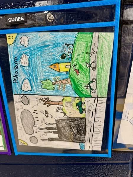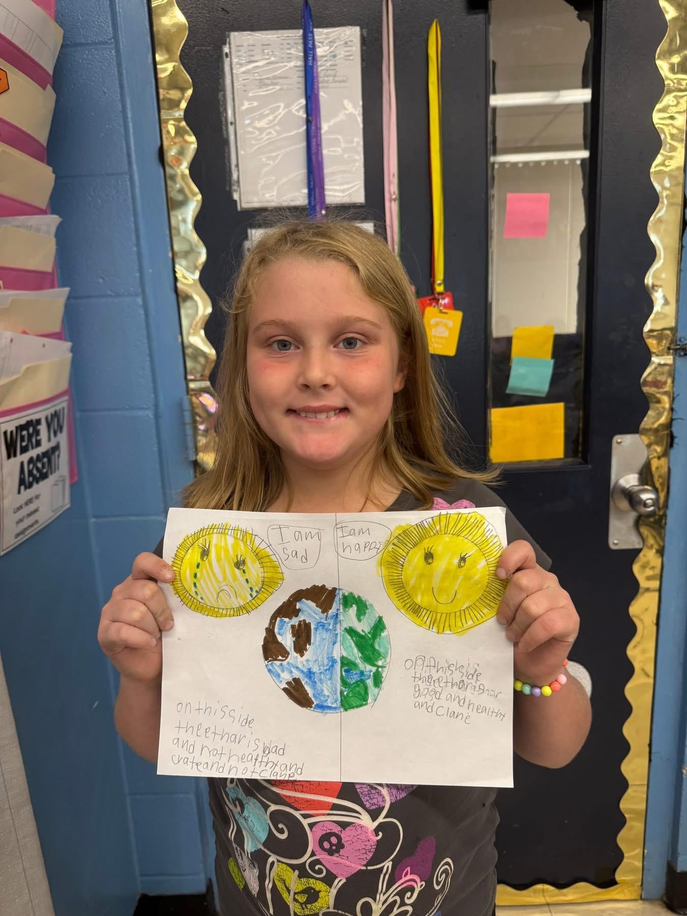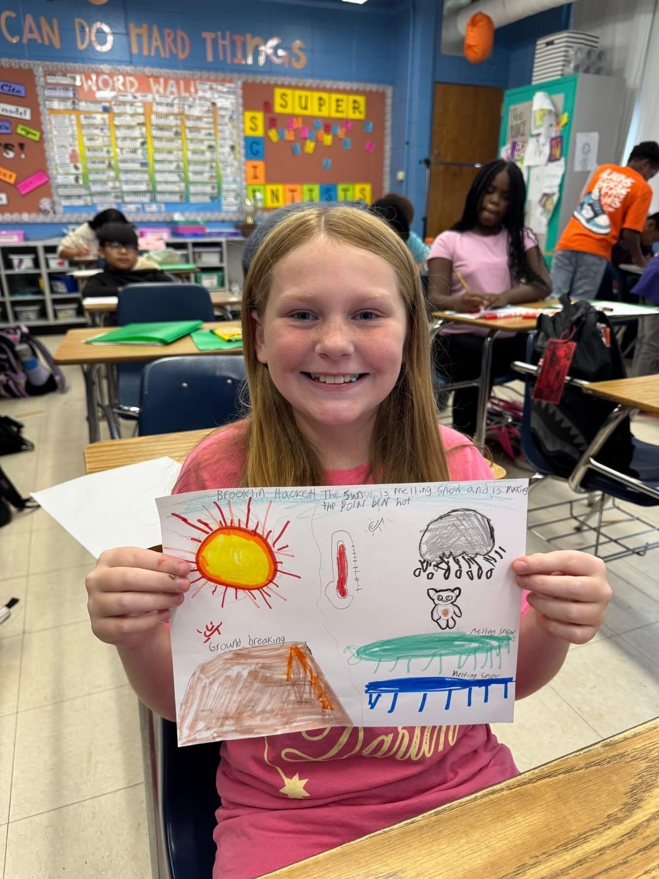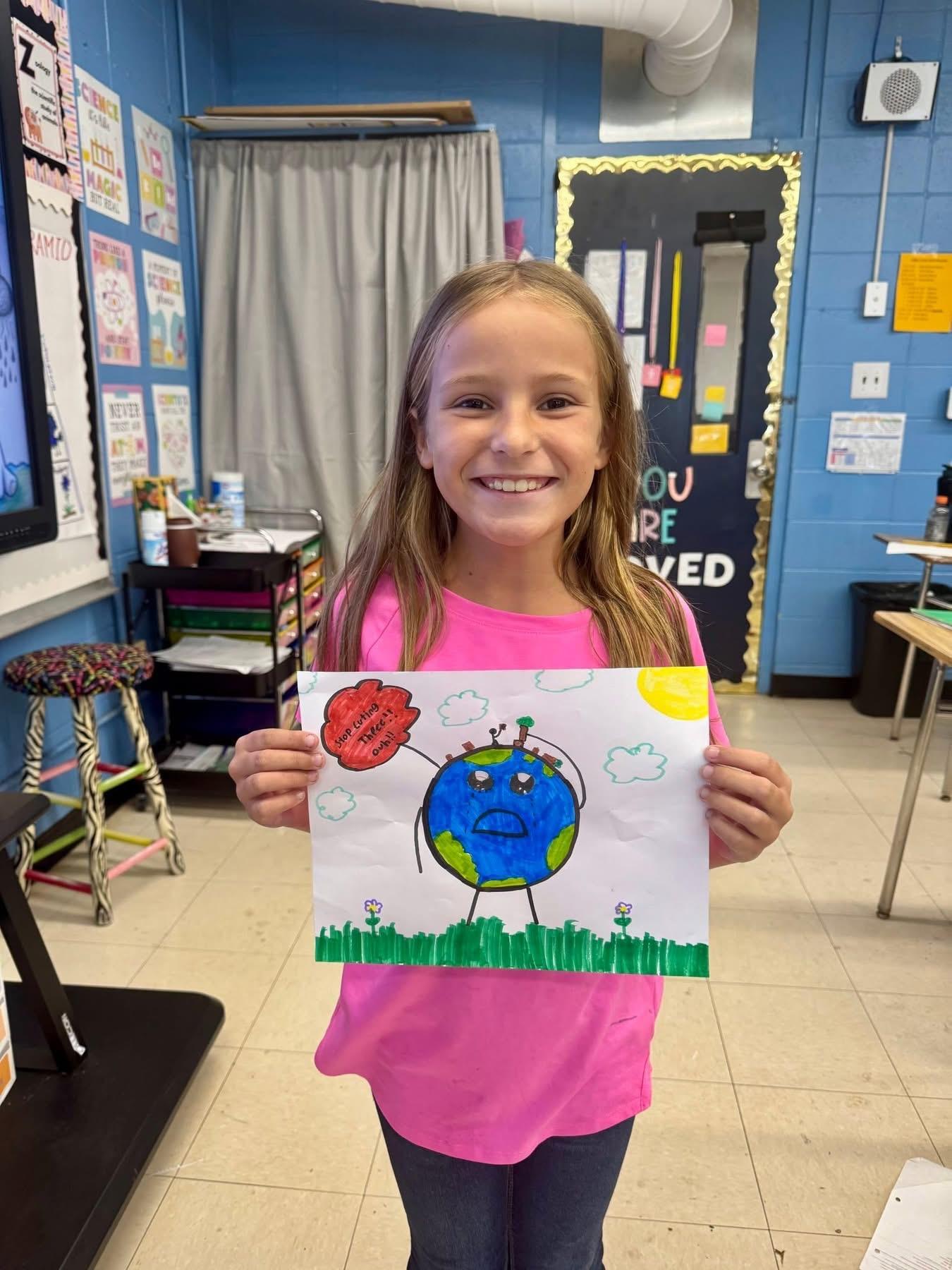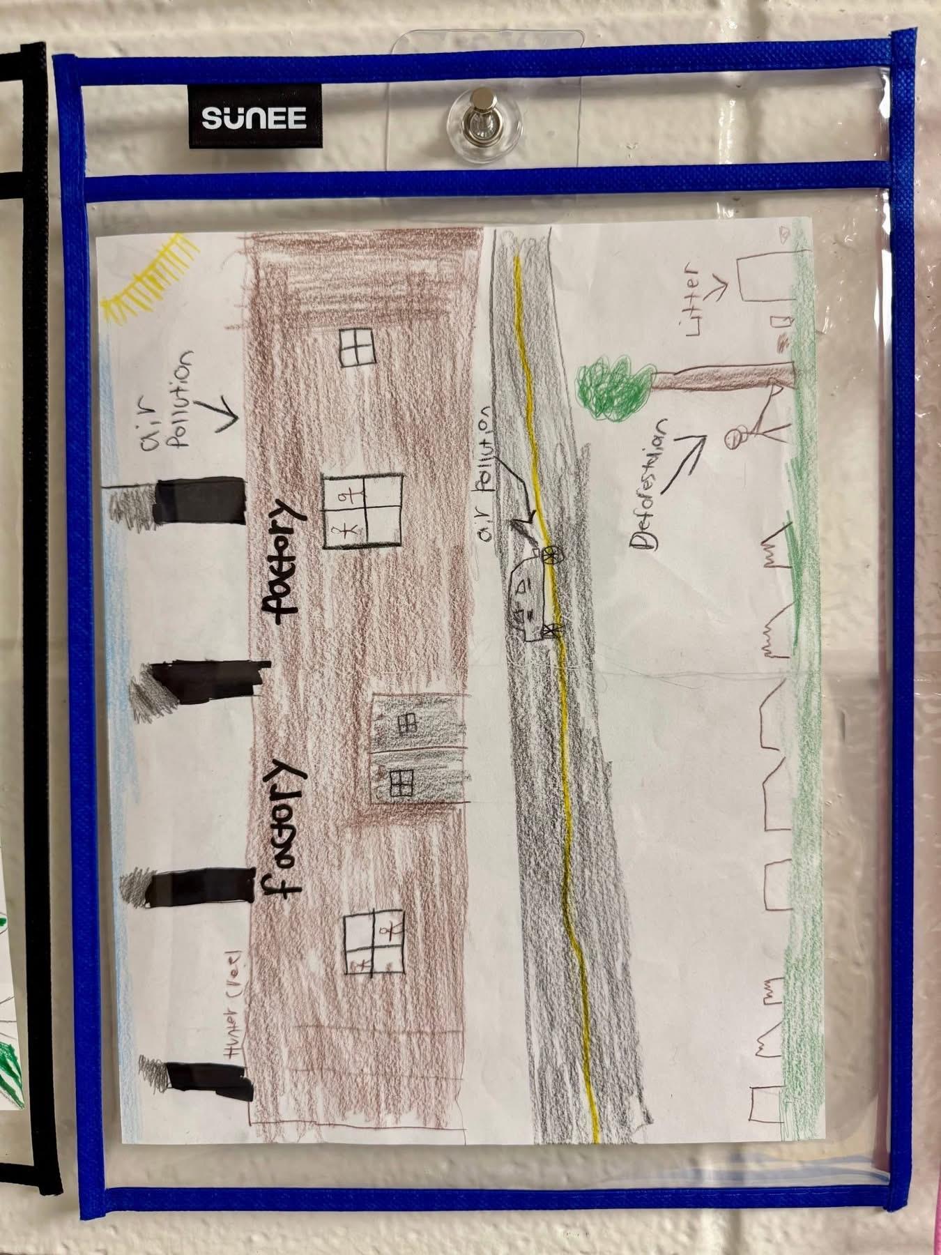 Mrs. Adam’s 5th grade students created cause-and-effect posters to illustrate the impact humans have on our environment, focusing on issues like air pollution, deforestation, and overflowing landfills. They were especially shocked to learn just how much trash landfills hold! The project sparked meaningful discussions about how small changes can add up to big differences in protecting our planet.